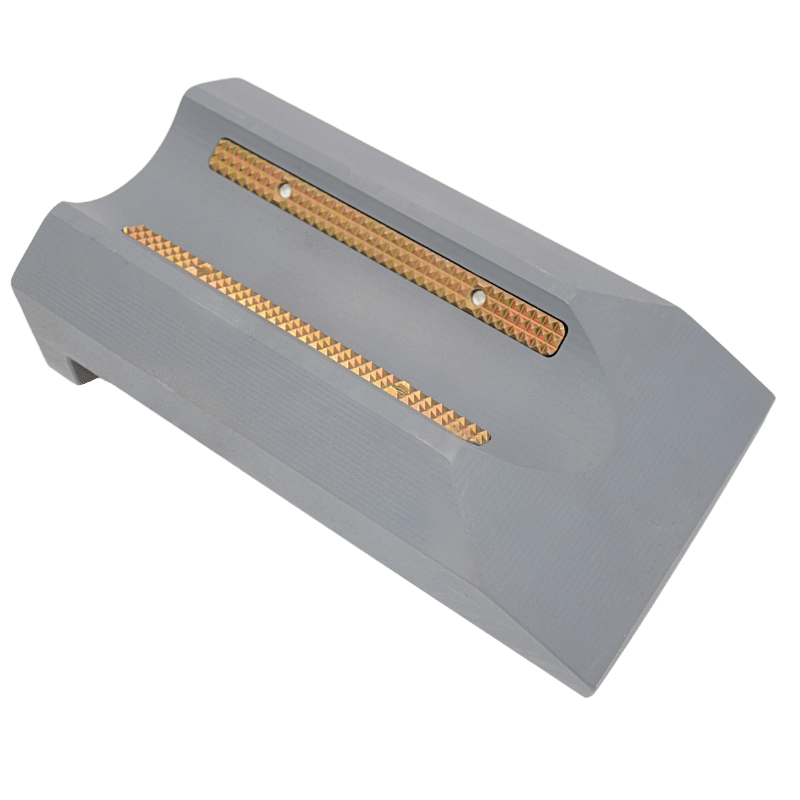The Ipoh Casting footclamp jaws are a design variation based of the older brazed in carbide style. The jaw itself is machined from solid block steel in only 2 setups on out 5 axis CNC. Doing this results in a accurate and consistent gripping force onto the drill pipes. The teeth are machined from tool steel which has then been hardened to 55hrc. The advantage of this is that the teeth can be replaced in the field in minutes instead of having to bring a number of heavy spare jaws along. The teeth are the same across all sizes.